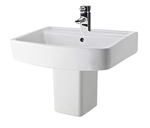Square ceramic basin with a semi pedestal suits wall-mounted cloakroom installations and includes an overflow and a single pre-drilled tap hole. Traditional fireclay construction delivers a smooth, durable finish backed by a five-year manufacturer's guarantee.