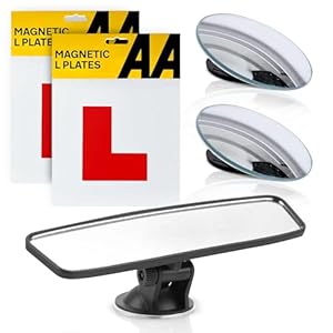 Suitable for learner drivers and supervising instructors who need a ready-to-fit kit for lesson use and test preparation. The combination of road-legal magnetic L plates, wide-angle blind spot mirrors and a clip-on interior rear view mirror makes a practical visibility and supervision package. A straightforward, durable selection of accessories that delivers long-term value across many practice sessions.