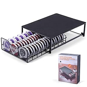 - • Best for: Households wanting neat countertop storage and quick capsule organisation