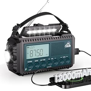 - • Power Options: Five charging methods: Type-C, solar panel, hand crank, AAA batteries and built-in rechargeable battery