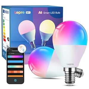 Lepro BP1 AI Smart Bulb E14 RGBWW, Works with Alexa & Google Assistant, Music Sync, Colour Changing, 4.9W = 40W, 470lm Dimmable, App Voice Control, Personalized AI Lighting Designer, Pack of 2