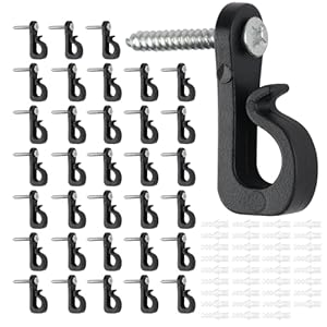 A 35-piece set of stainless steel and ABS screw-in hooks supplied with expansion screws. Safety buckles keep wires and decorations in place while routing string lights neatly along fences and beams.