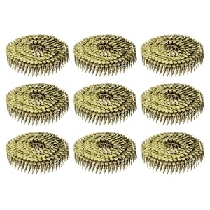Collated coils are arranged for use in siding nail guns, allowing rapid sequential firing without manual feeding. Full round heads offer a larger bearing area, helping to drive material flush and distribute load over the surface.