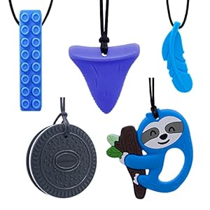 GNAWRISHING Chew Necklaces for Sensory Kids 5 Pcs Sensory Chewy Toys for Autism Girls and Boys, ADHD Toddler, Adult