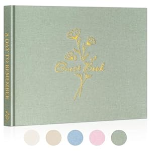 Sage green linen hardback protects entries and looks neat on display. 108 blank pages leave room for guest messages and photos.