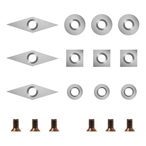 Six mounting screws are supplied to secure the inserts in compatible toolholders, and the sizes used are common for lathe turning insert kits. The listings note explicit compatibility with a wood lathe turning tools kit.