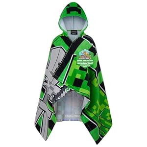 Families with Minecraft fans aged roughly 6 to 14 will find this hooded poncho towel practical for baths, pool sessions and beach days. The licensed Creeper design combined with absorbent lightweight fabric and hand-hole coverage makes changing quicker and more enjoyable. Durability and retained softness after washing give it solid long-term value for regular use.
