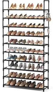 - • Storage Capacity: Ten tiers accommodate a variety of shoes and accessories, with side hooks for extra items