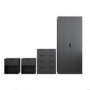 Suitable for buyers who want a matched bedroom storage solution and straightforward furnishing in mainland UK. The four-piece set supplies wardrobe, drawer and bedside storage in a consistent black matt finish. Clear delivery terms and an all-in-one approach offer sensible long-term value for customers who can receive mainland UK deliveries.