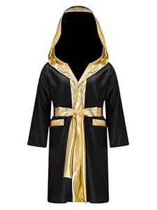 A children's costume robe designed to deliver a champion look while staying comfortable. The Vxuxlje Boys Boxing Robe brings satin shine, a hood and an included metallic belt so young performers feel confident. Is the styling and build right for your child's Halloween or stage performance?