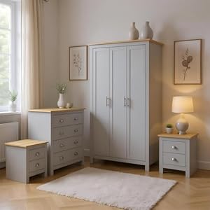 - Complete four-piece suite – Provides matching wardrobe, chest and bedside tables for cohesive bedroom styling