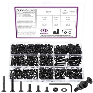 The BATENGKEJI M4 Screws Set suits hobbyists, mechanics and installers who need a comprehensive selection of M4 fixings. High-strength 10.9 carbon steel combined with countersunk and hex socket head screws, plus ample nuts and washers, makes it reliable for routine repairs. Offers strong long-term value for workshops and DIYers thanks to durable materials and a complete assortment.