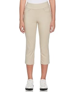 The PGA TOUR Women's Golf Capri Pants suit golfers who want comfortable, shaping trousers for regular play. Built-in tummy control, moisture-wicking performance and sun protection combine to keep players confident and focused. While representing a step up from basic leisure capris, durable fabric and practical features make them a worthwhile long-term wardrobe staple.