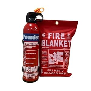 - • Protection Type: 600g aerosol dry powder extinguisher paired with a 1m x 1m soft-case fire blanket