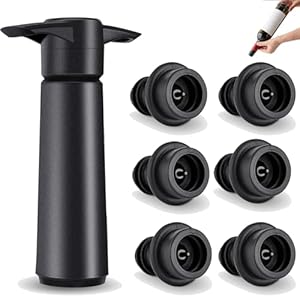- Included items: 1 vacuum pump and 6 reusable stoppers
