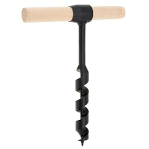 Manual auger with an ergonomic grip and heavy-duty steel construction. Lightweight and compact for outdoor and woodworking tasks.