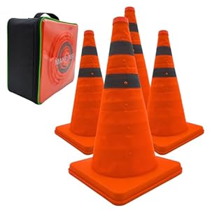 Home improvement safety gear, the MANRUNBO Collapsible Traffic Safety Cones, creates clear, temporary warning zones for drives, car parks and playgrounds. Drivers and parents gain reassurance from bright, easy-to-store cones that are quick to deploy and tidy away. Are foldaway cones robust enough for frequent outdoor use?