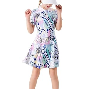 Polos collar and sporty prints are offered in sizes for girls aged 3 to 14. UPF 50+ sun protection and quick-dry, moisture-wicking fabric suit outdoor sports.