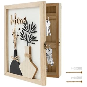 Wall-mounted key storage that keeps entranceways organised while adding a rustic touch. The MENIBBLER Wall Mounted Key Cabinet pairs six internal hooks with a printed "Home" door and dried-flower styling for a homely look. Is this the most practical choice for your hallway?