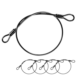 Each cable measures 2 feet (0.6 metres) with a 4mm diameter and a 7x7 high-tenacity steel core covered by a thick PVC sleeve. Double-loop ends create a continuous loop when used with a padlock.