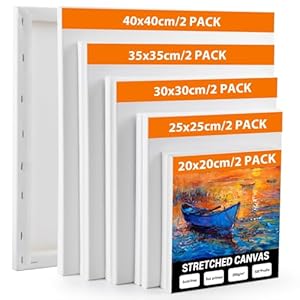 - Pack contents: 10 pre-stretched canvases (five sizes, two each)