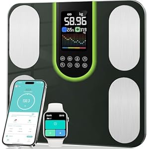 Scales for Body Weight & Fat, Smart Body Fat Scales with 4-Electrode, Digital Weighing Scales with App (20 Metrics) to Measures BMI, Muscle Mass, Visceral Fat, Hydration Level - Bathroom Scales 180kg