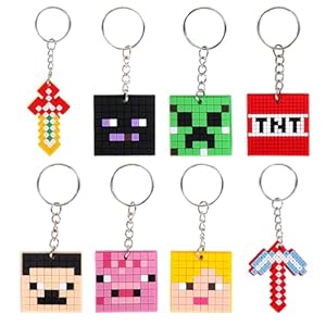 A pack of 32 soft PVC keyrings in varied creeper designs with smooth edges. Lightweight build suits backpacks, stationery and keys while meeting safety checks for children's use.