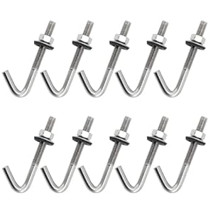 Ten M6x80mm J-hook anchor bolts made from 304 stainless steel for roofing applications. Hex nuts and washers are included to complete each fixing.