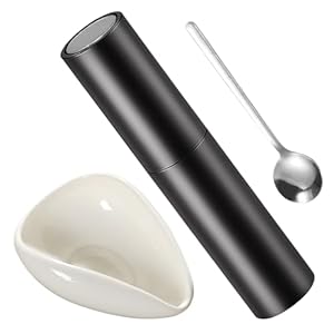 - Contents: Ceramic dosing cup, small spray bottle, stainless steel scoop spoon