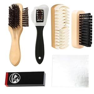- Contents: 6-piece kit including suede eraser, 3-sided brush, polishing brush and microfiber cloth