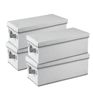 Each foldable box stacks vertically to save shelf space and collapses flat for compact storage. Non-woven fabric with a cover and reinforced stitching helps protect contents from dust and moisture.