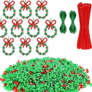 - Kit contents: 192 red beads, 672 green beads, 48 chenille stems