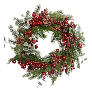 - • Decorative Quality: Lifelike mix of eucalyptus, holly, snowberries and red baubles for a full, vibrant look