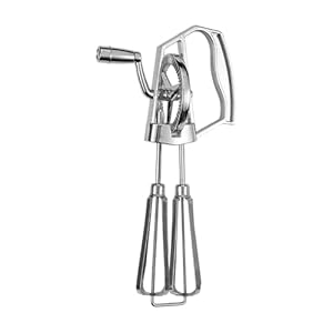 Ergonomic construction reduces discomfort even after long-term use by improving hand position and leverage while turning the crank. The rotary mechanism converts hand motion into consistent whisking action.