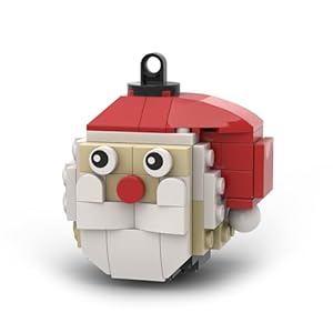 A custom kit of 65 genuine LEGO bricks supplied loose with a printed instruction sheet. Assembly produces an approximate 5cm diameter Santa-themed bauble for seasonal display.